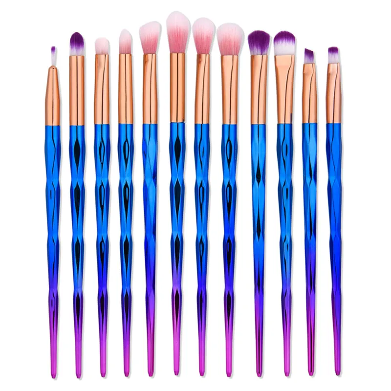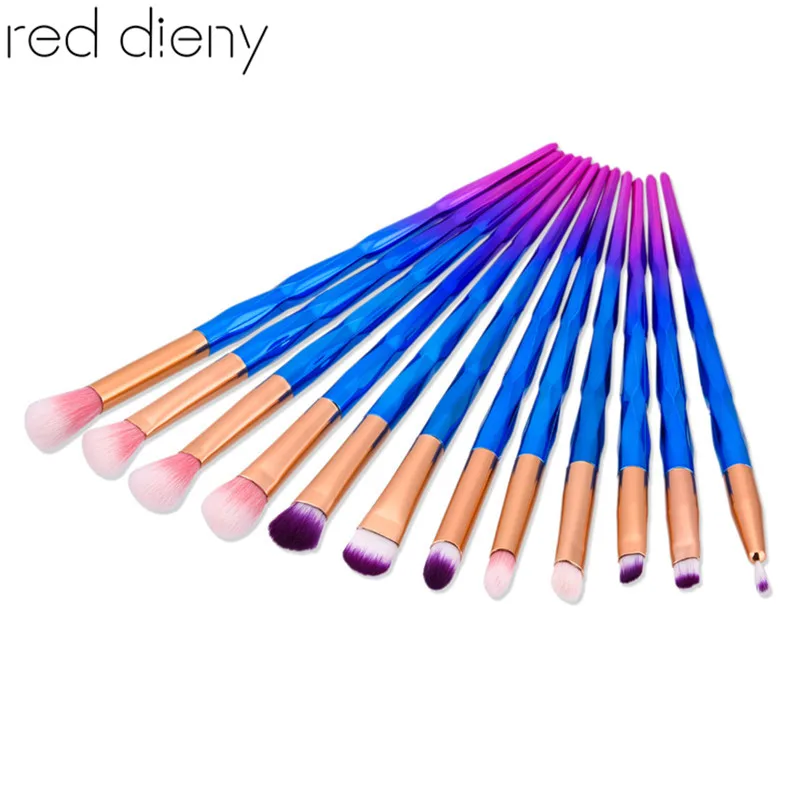 Discount 12pcs Makeup Brush With Gradient Thread Handle Rainbow Diamonds Makeup Tools Professional Foundatio