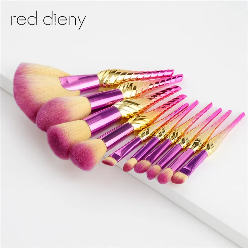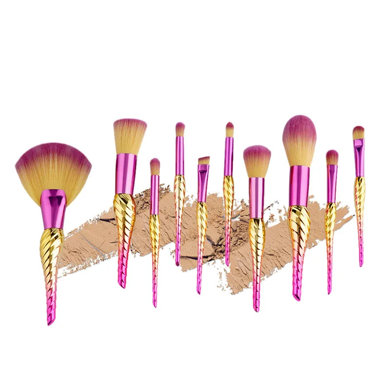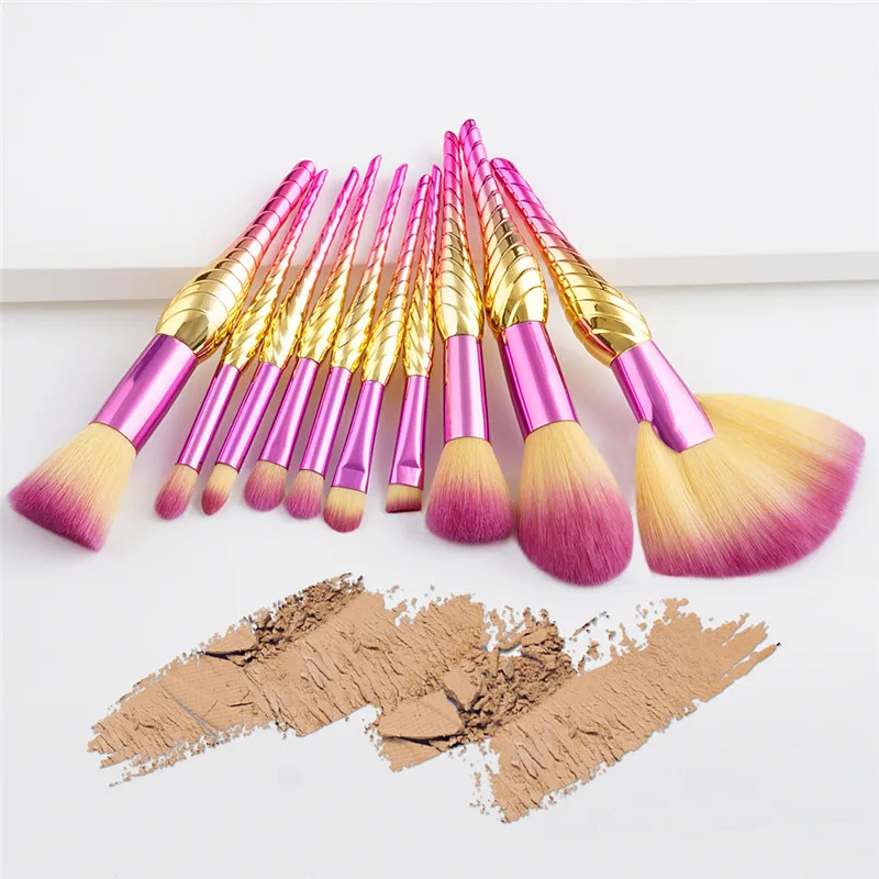 Clearance 10Pcs Rainbow Conch Makeup Brushes Set Eyeshadow Blush Brushes Powder Foundation Contour Concealer