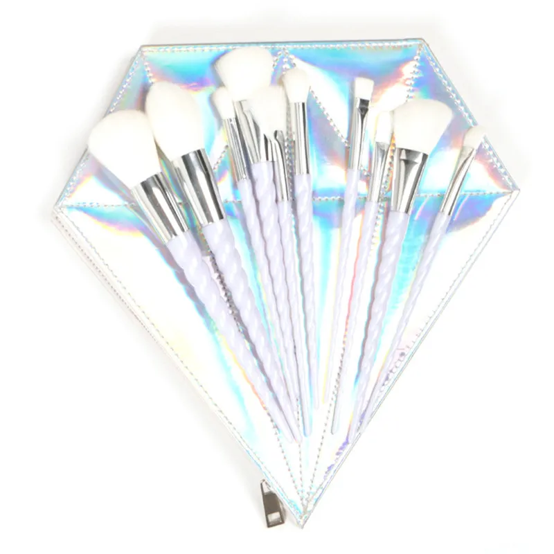 Price 10pcs Thread Rainbow Handle Makeup Brush Diamond Bag Face Eyeshadow Powder Foundation Eyebrow Make